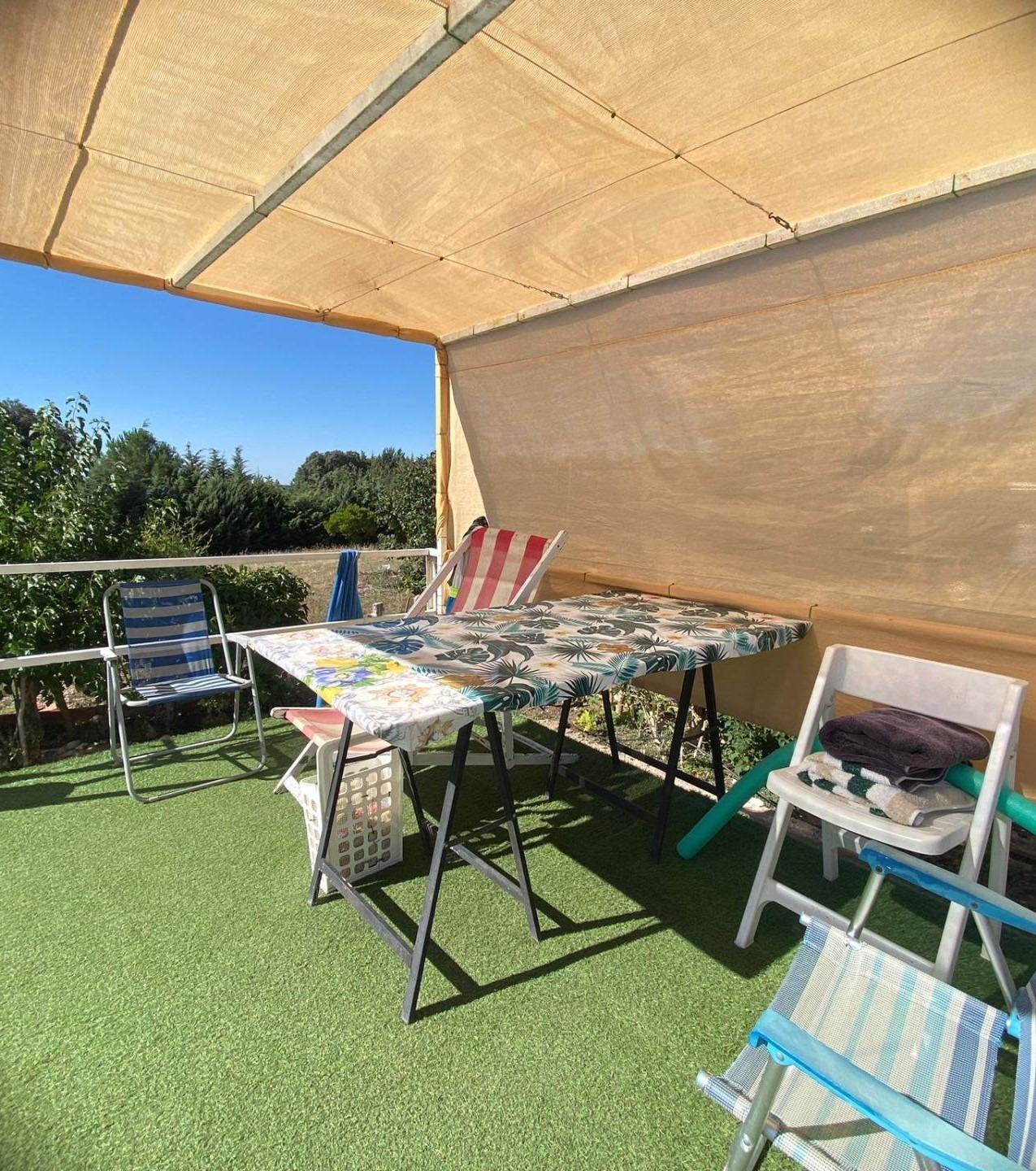 , Casa de tres habitaciones una de ellas doble con armarios empotrados, salón con cocina americana y chimenea, un baño y una terraza acristalada en la entrada, todo en la planta baja con una superficie de aproximadamente 95m2 y en la segunda planta abuhardillada con una superficie de aproximadamente 60m2, con una terraza de 20m2 con vistas espectaculares.,