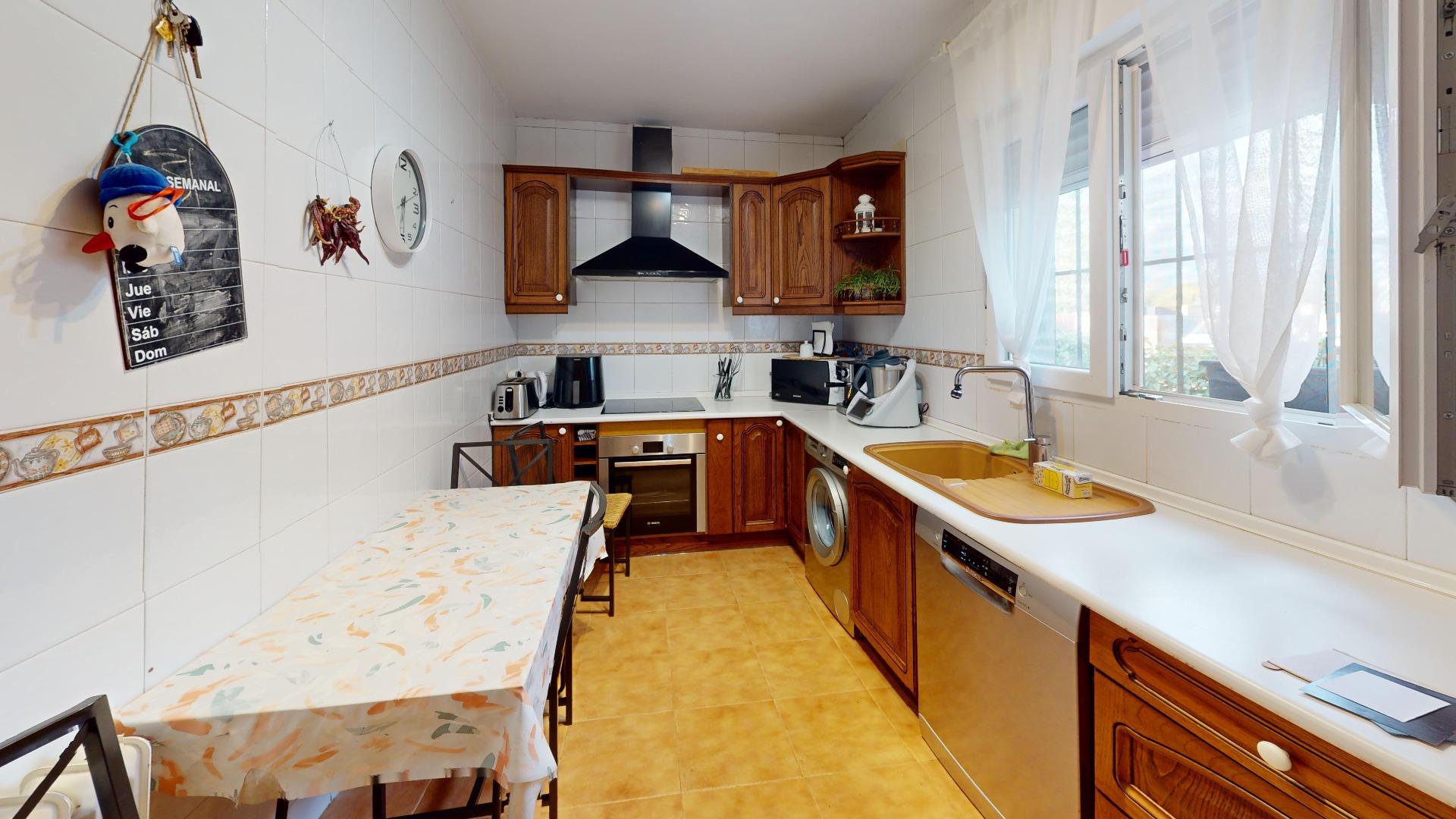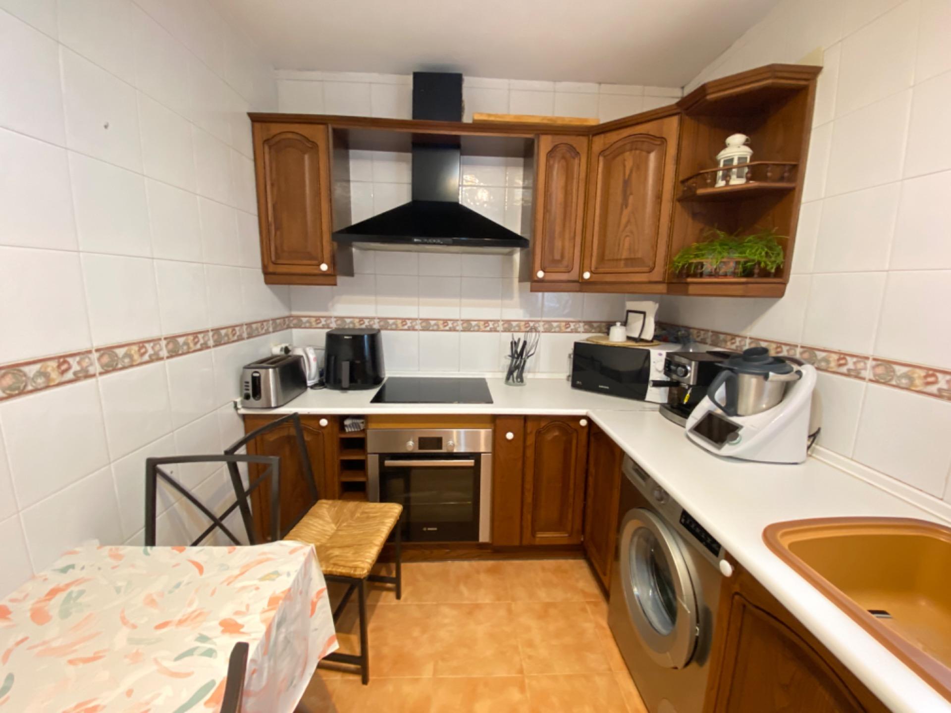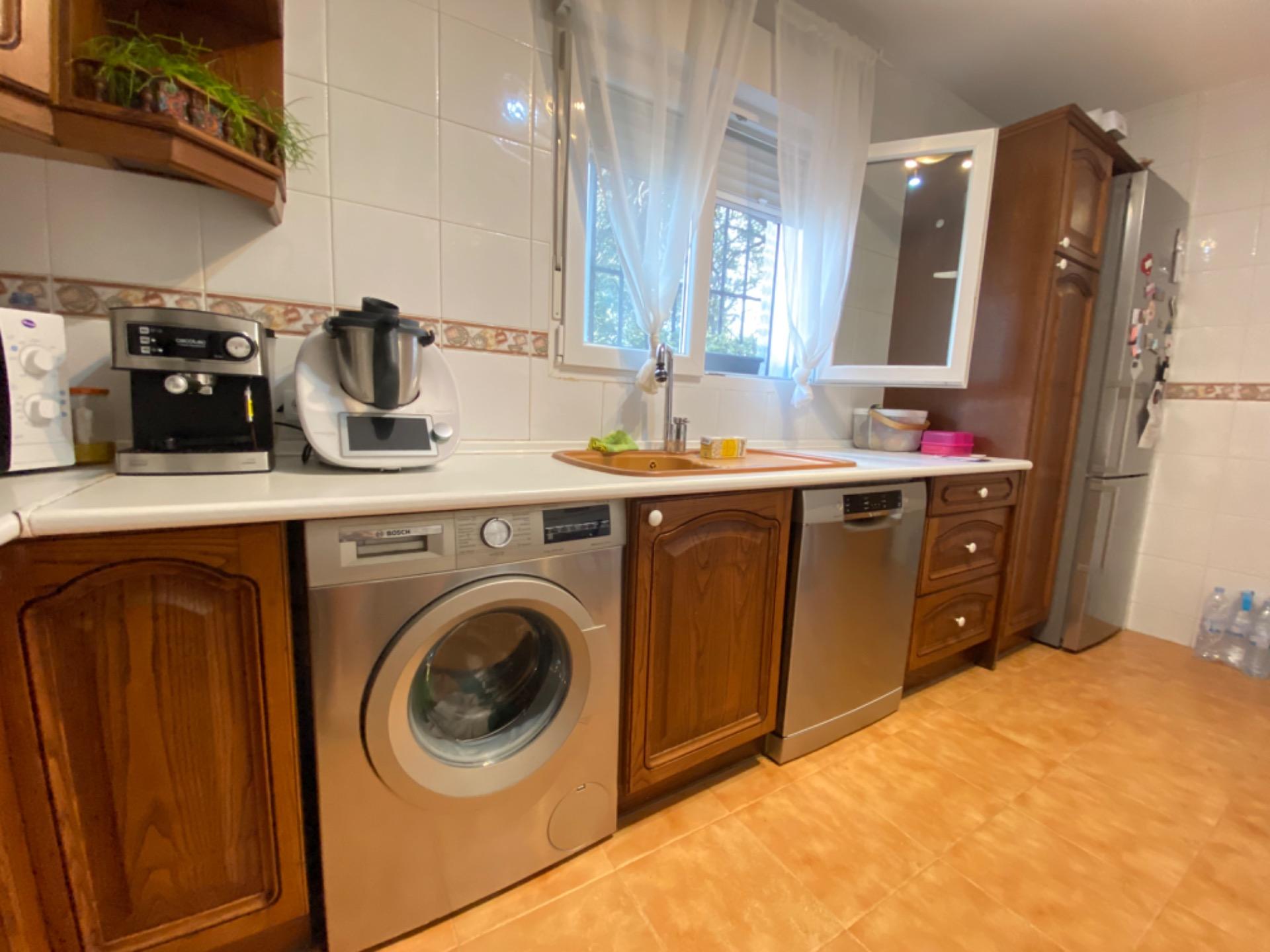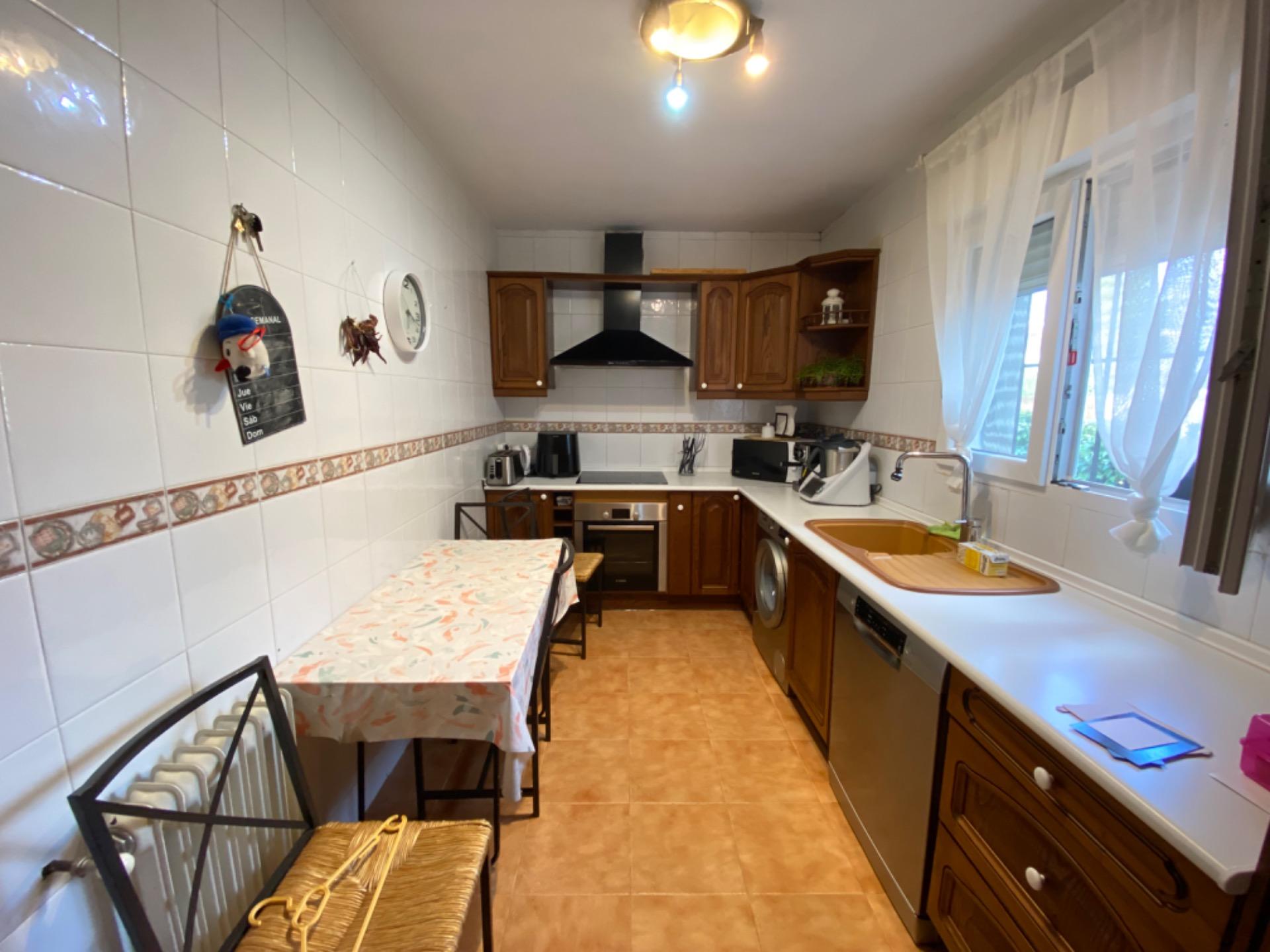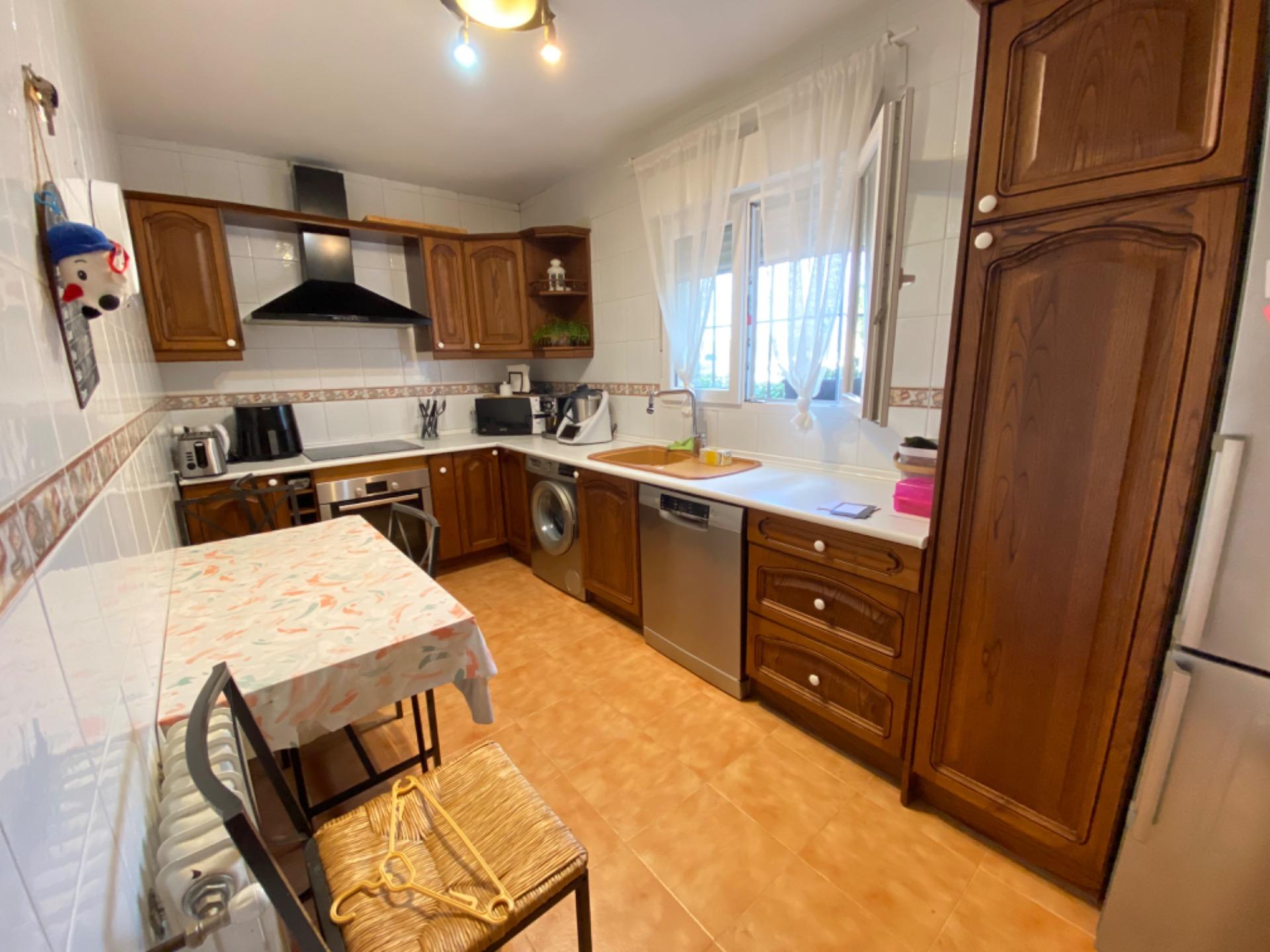 , La cocina es amplia, completamente amueblada y con ventana al exterior, proporcionando un ambiente luminoso.,