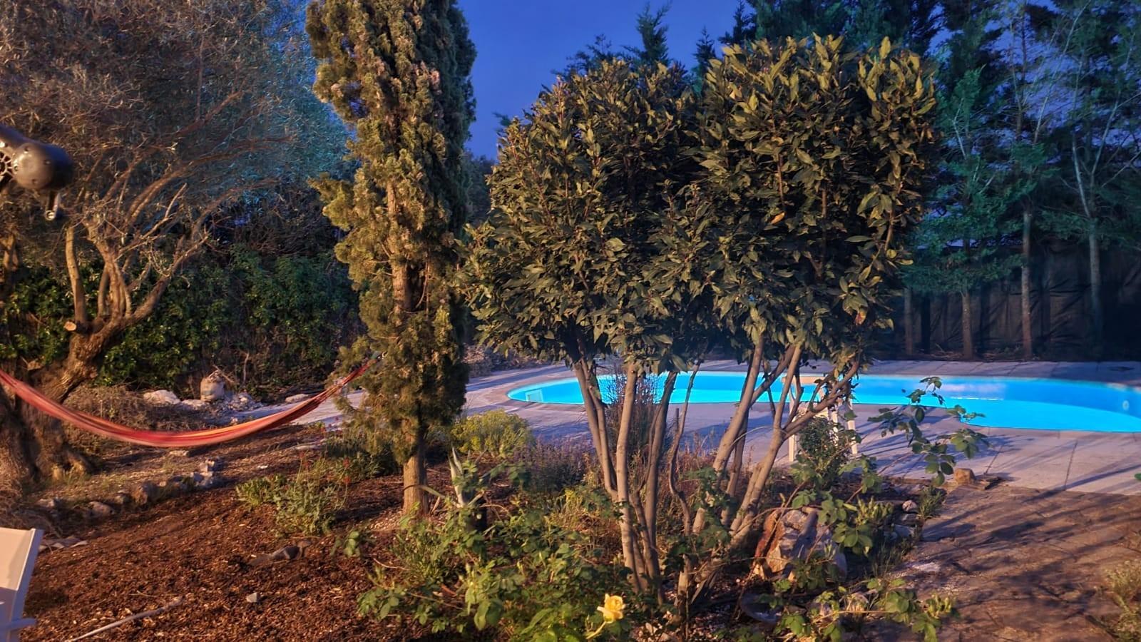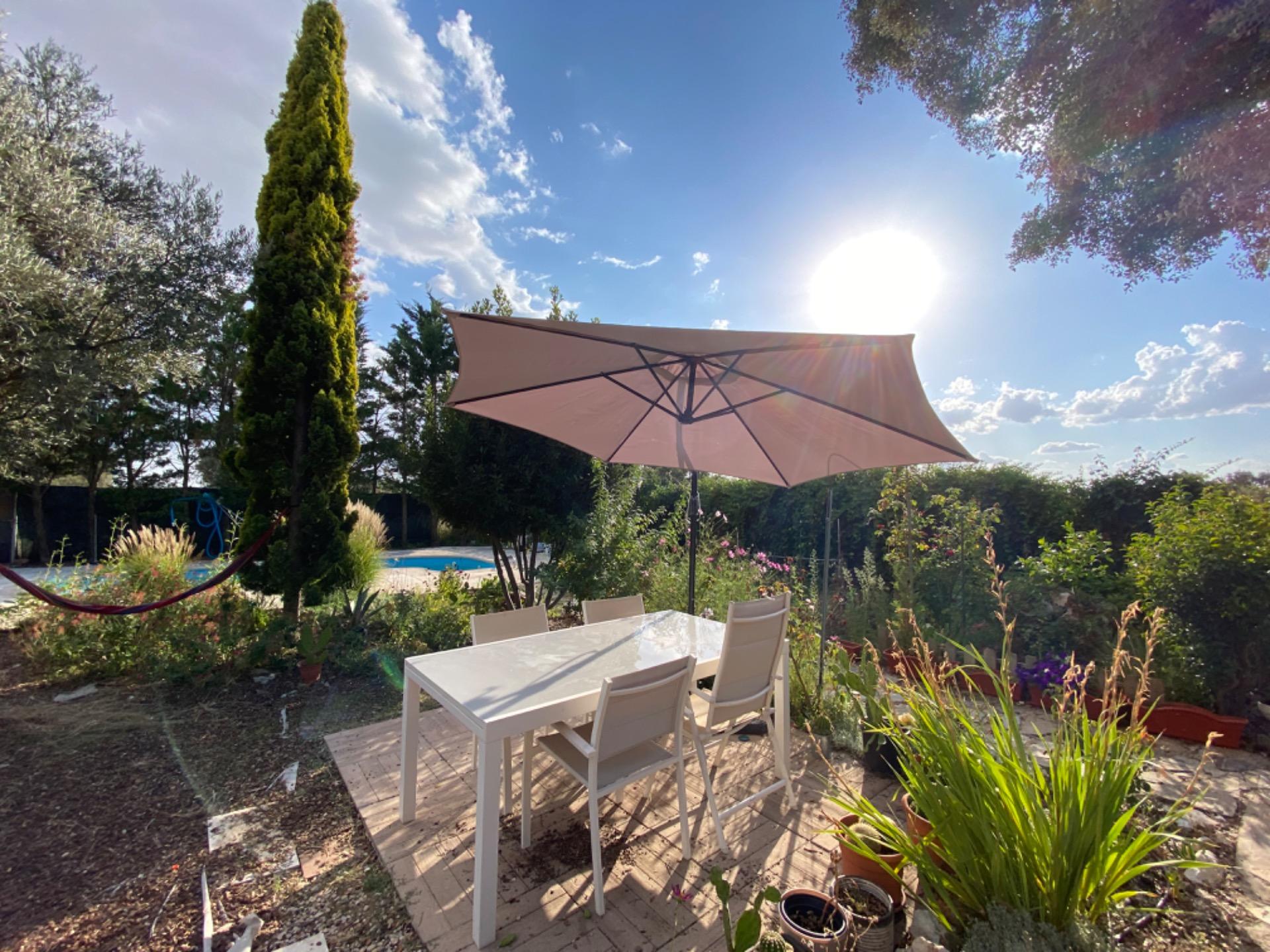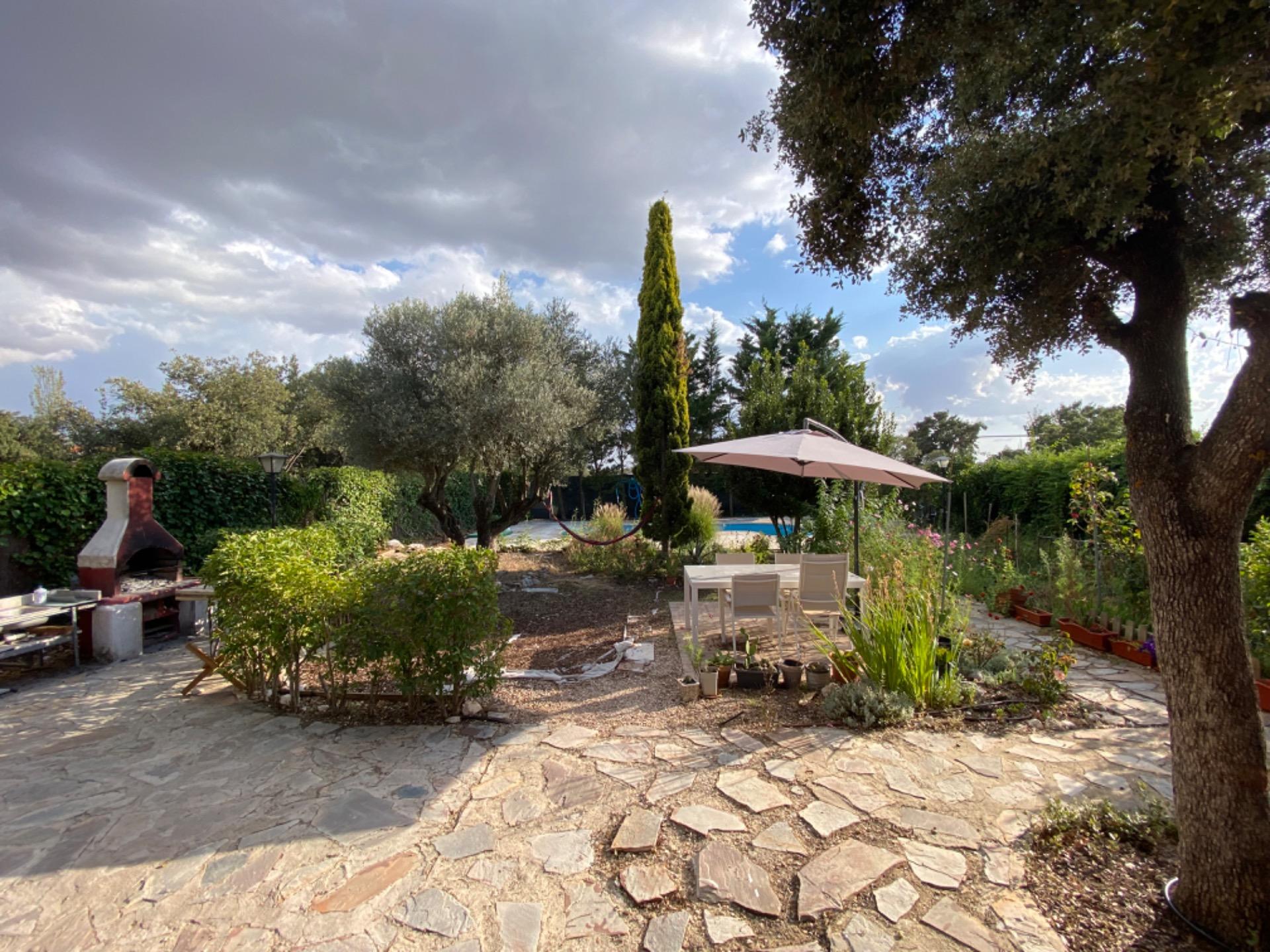 , En las zonas exteriores, nos encontramos con un maravilloso jardín, con arboles frutales y una estupenda piscina.,