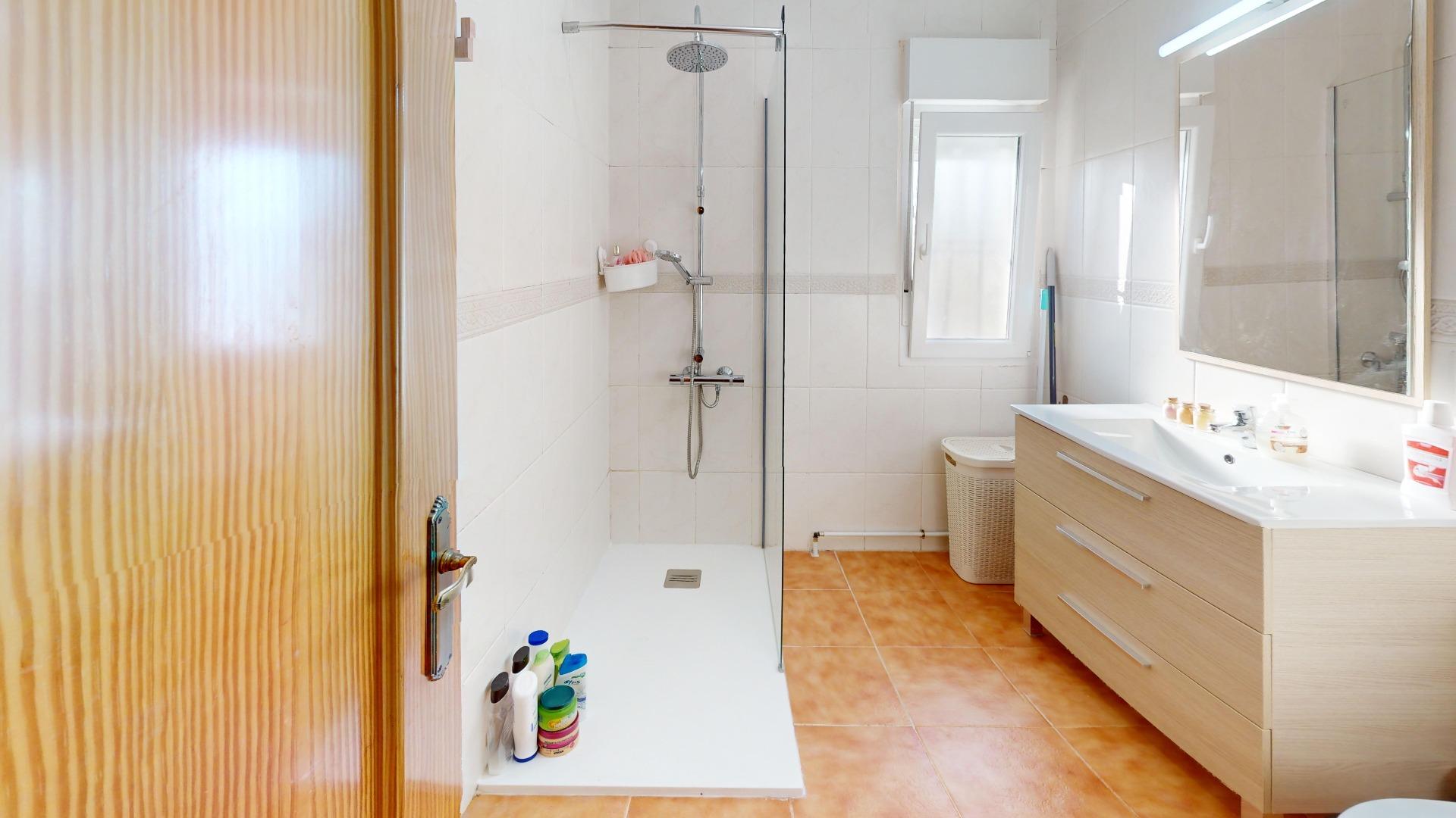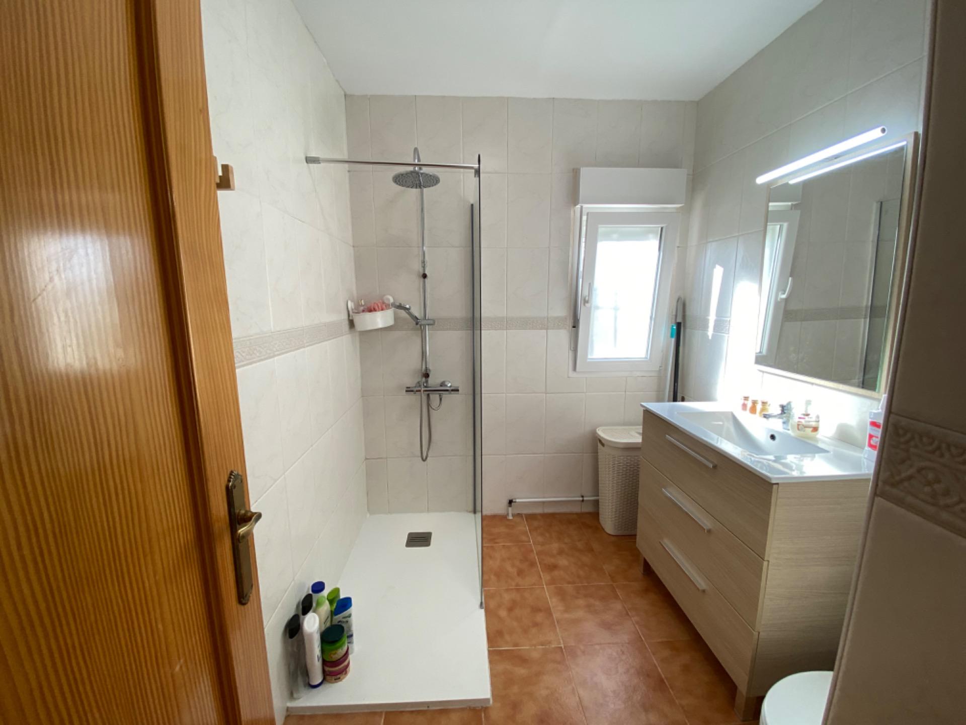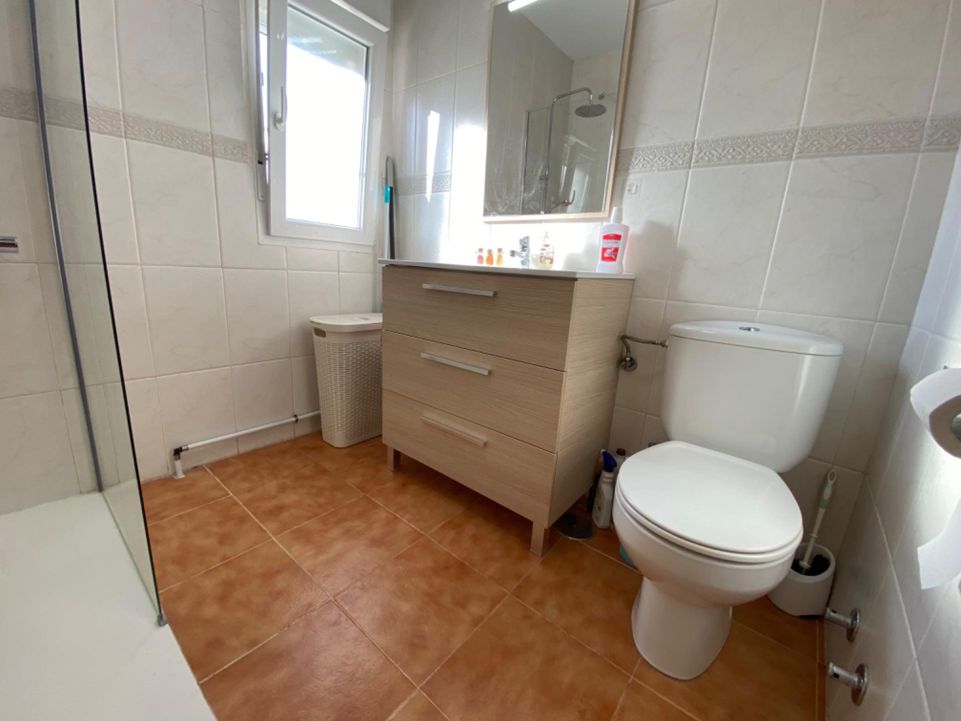 , Además, la vivienda dispone de un baño común, también completo, con plato de ducha y ventana al exterior.,