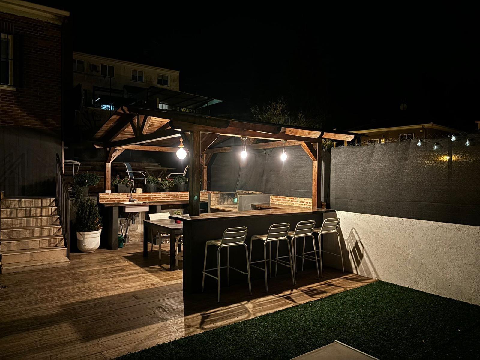 , Barbacoa de obra totalmente equipada con gran espacio de almacenamiento, zona amplia con un ambiente acogedor su entorno invita a disfrutar de largas comidas al aire libre en familia.,