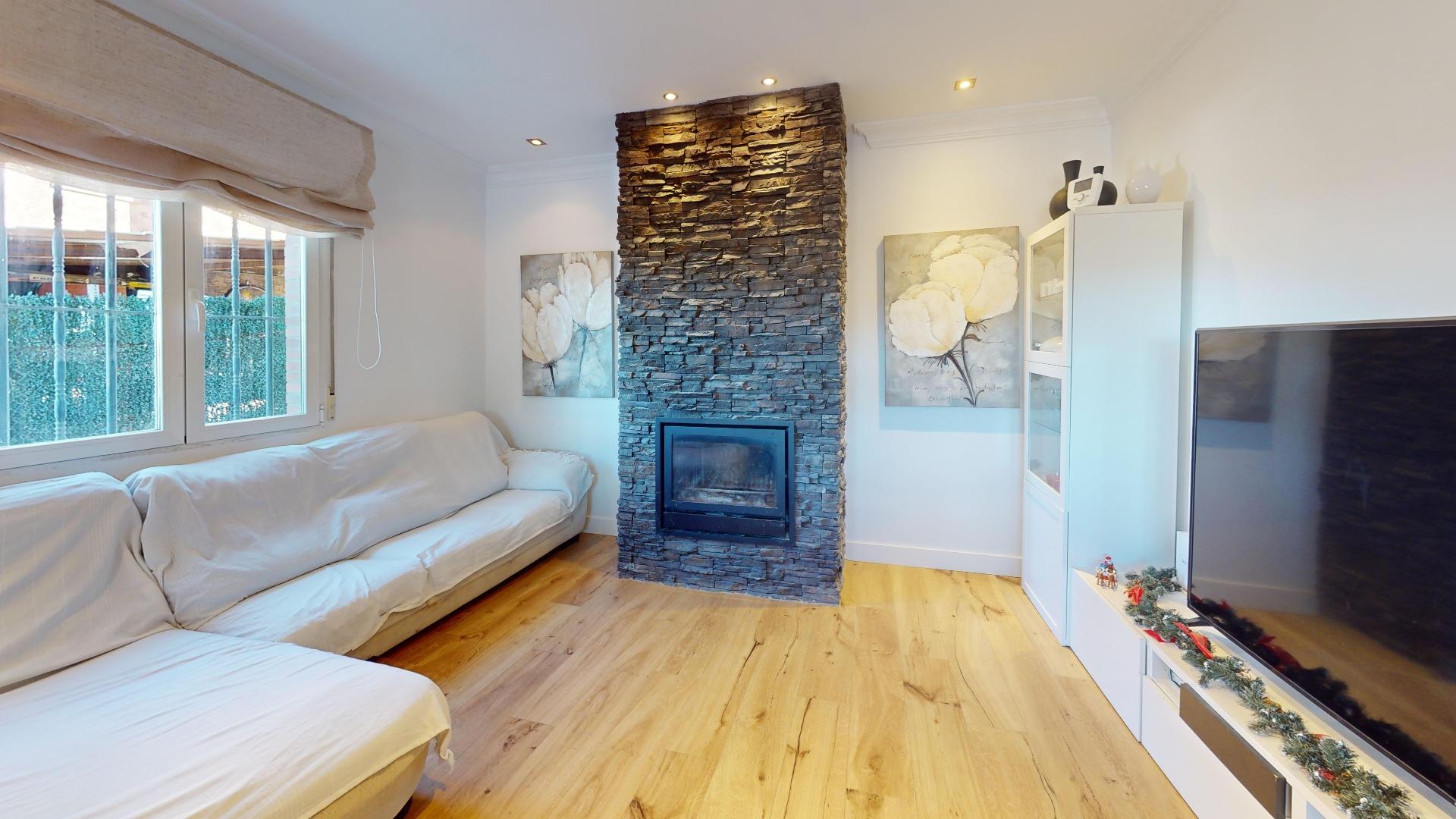 , Gran salón con chimenea: Un espacio cálido y acogedor, ideal para reuniones familiares, tardes de invierno o simplemente para relajarte junto al fuego después de un largo día.,