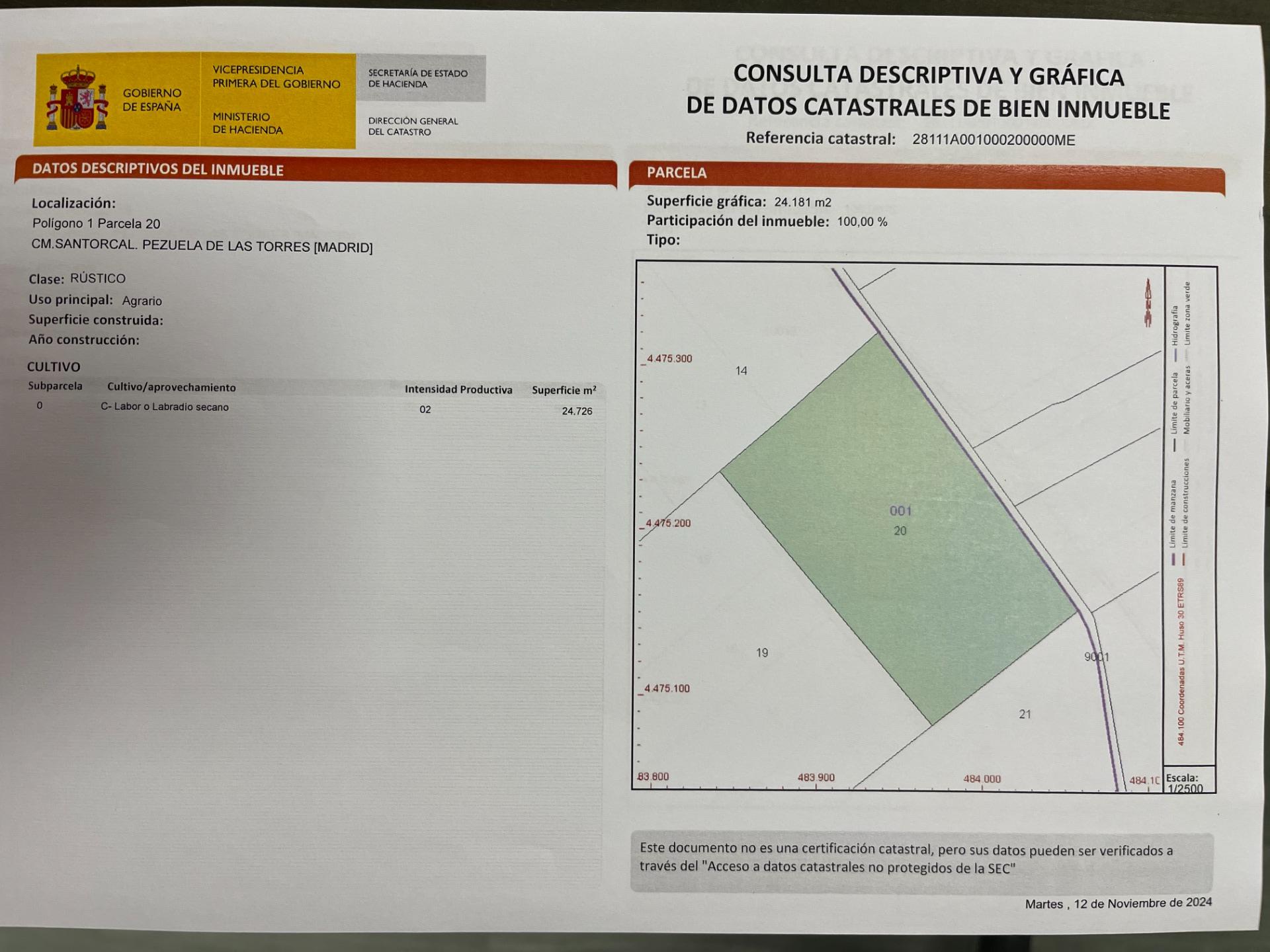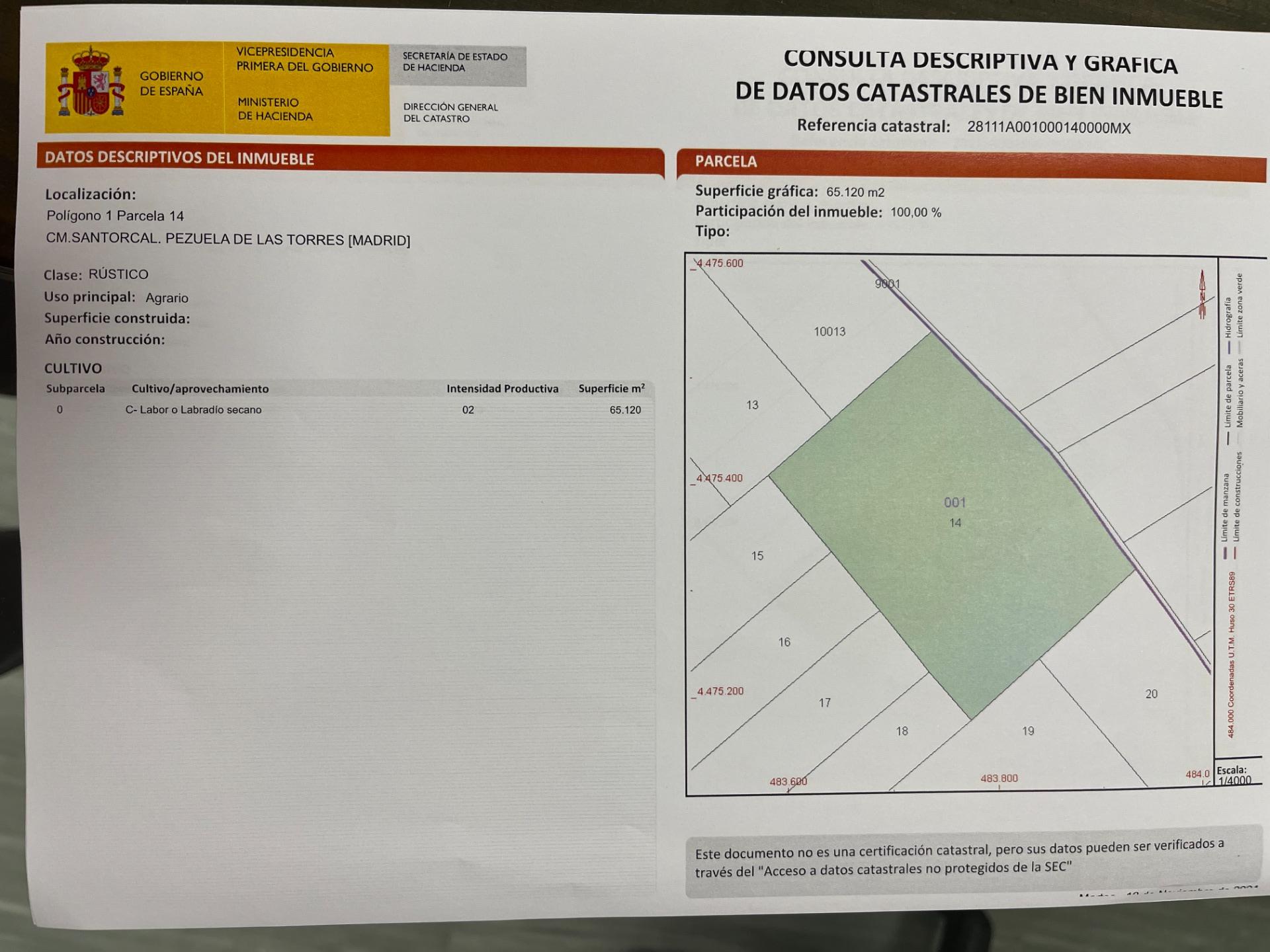 EXCLUSIVAS ALCALA tiene a la VENTA terreno rustico, el PEZUELA DE LAS TORRES (Comunidad de Madrid), se corresponde con 3 Parcela dentro del Polígono 1, Parcelas 14, 19 y 20. Clase Rustico Agrario. Cultivo y aprovechamiento: ,